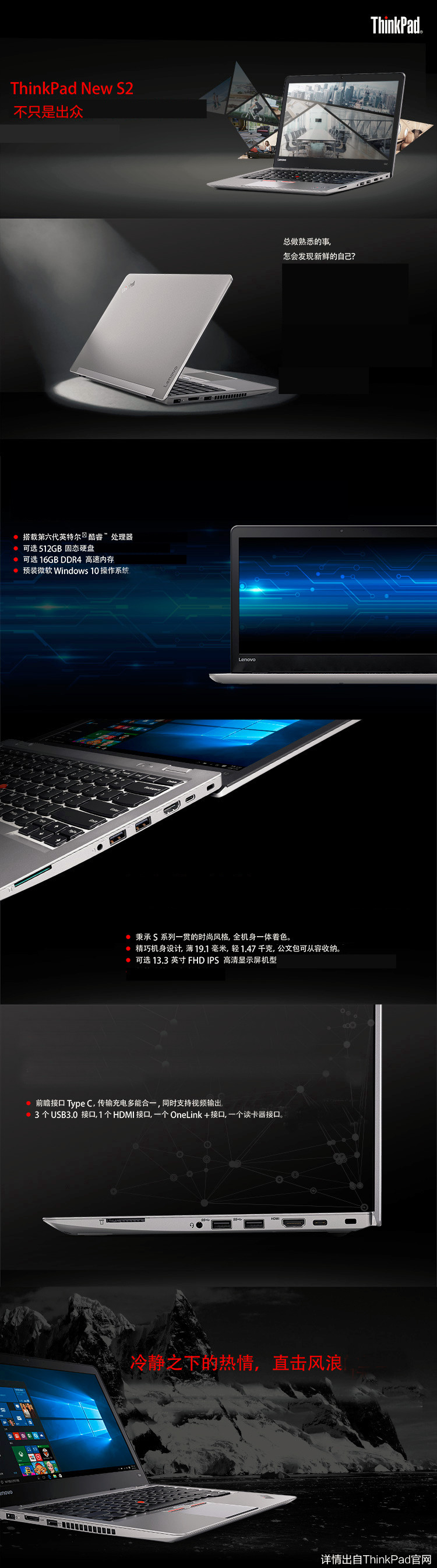 联想ThinkPad New S2 20GUA005CD新品13.3英寸时尚轻薄笔记本电脑 05CD i5-6200U 8G 256G