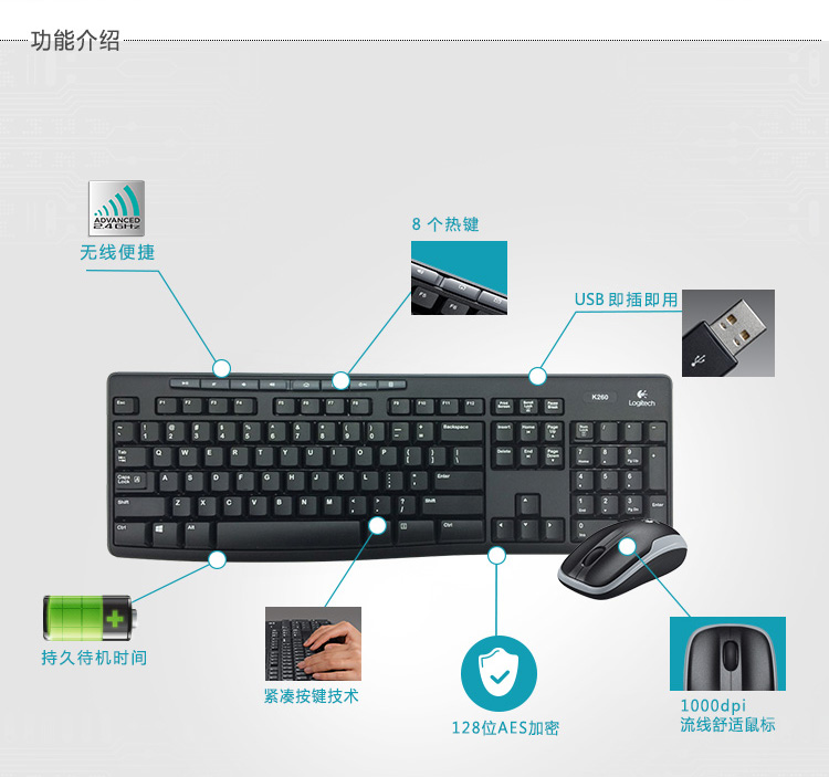 罗技(Logitech)MK260 无线光电键鼠套装 罗技(Logitech)MK260 无线光电键鼠套装 罗技(Logitech